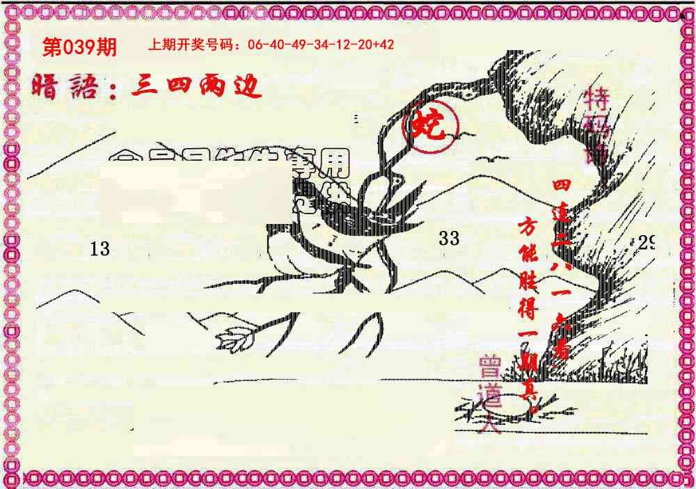 202639期:曾道人暗语
